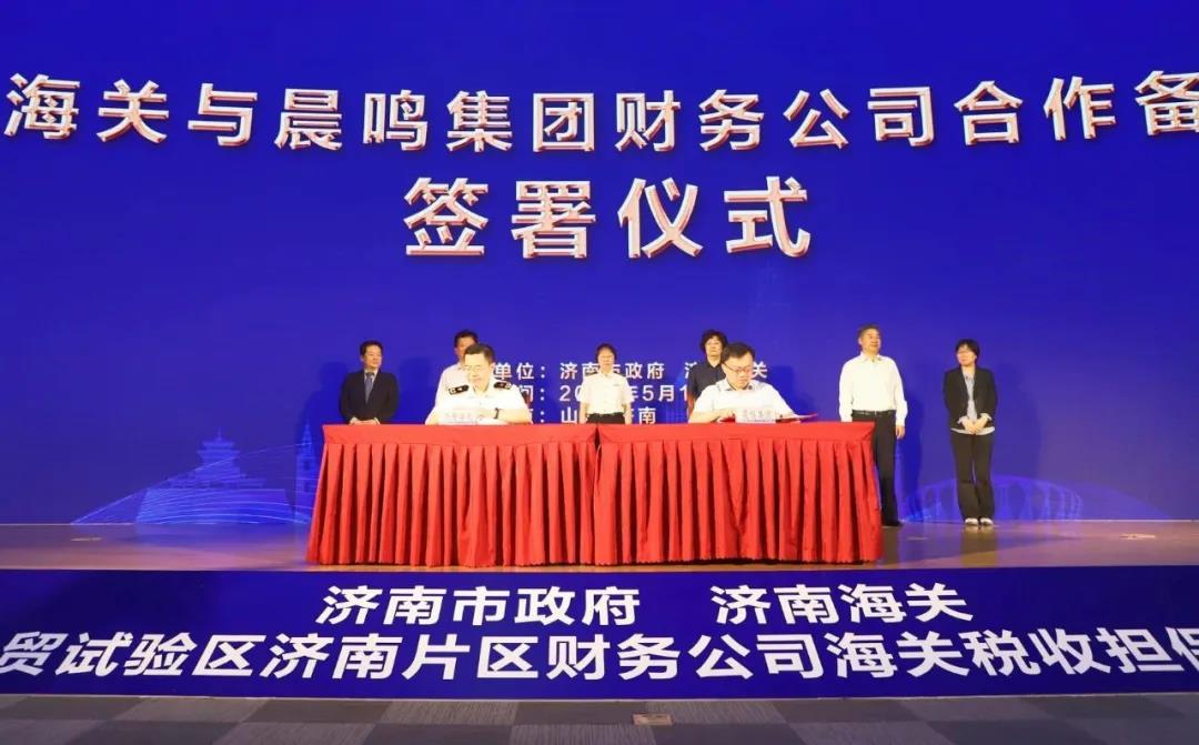 5月19日,濟南市政府、濟南海關支持山東自貿試驗區(濟南片區)財務公司海關稅收擔保啟動儀式在浪潮科技園隆重舉行。會議由濟南市政府辦公廳黨組成員楊傳軍主持。會上,晨鳴紙業榮獲首批濟南海關企業集團財務公司試點企業。財務公司董事長李棟代表晨鳴集團與濟南海關簽署《濟南海關 山東晨鳴集團財務有限公司關于參與稅收擔保改革試點助力濟南自貿區建設合作備忘錄》,晨鳴集團總裁助理李康作為企業代表共同拍啟“企財保”落地自貿區的啟動球。