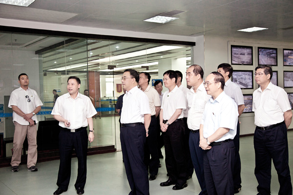 冒著高溫酷熱,胡春華一行深入到湛江晨鳴中控樓及生產車間,邊參觀邊聽取了陳洪國的相關介紹。胡春華詳細詢問了湛江晨鳴生產設備、產品、生產經營及項目建設等情況,對湛江晨鳴國際一流的設備和產品表示贊賞,對晨鳴集團在推進湛江發展中所作的努力、取得的成果給予肯定。在湛江晨鳴紙機生產線前,陳洪國董事長向胡春華書記介紹說,這條生產線建設周期雖然只有21個月,卻創造了全球同類工程建設的最快記錄,也是國內目前效益最好的造紙項目,胡春華連聲贊嘆,鼓勵晨鳴要繼續提高企業核心競爭力,進一步發揮好行業引領帶動作用。考察中,陳洪國還就項目后期規劃及海東新區岸線生態治理工程等進行了匯報,胡春華聽后非常高興,要求相關部門保持暢通的溝通協調機制,地方政府要做好服務,幫助企業解決項目中遇到的問題和困難,共同努力把項目規劃好、建設好,促進湛江發展。
