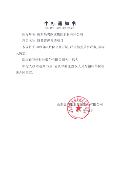 財務管理系統項目中標通知書